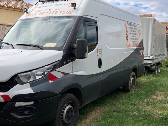 - Équipé de barres et sangles d'arrimage, de couvertures de protections, de harnais et sangle de manutention, ainsi que d'un diable spécial escaliers.